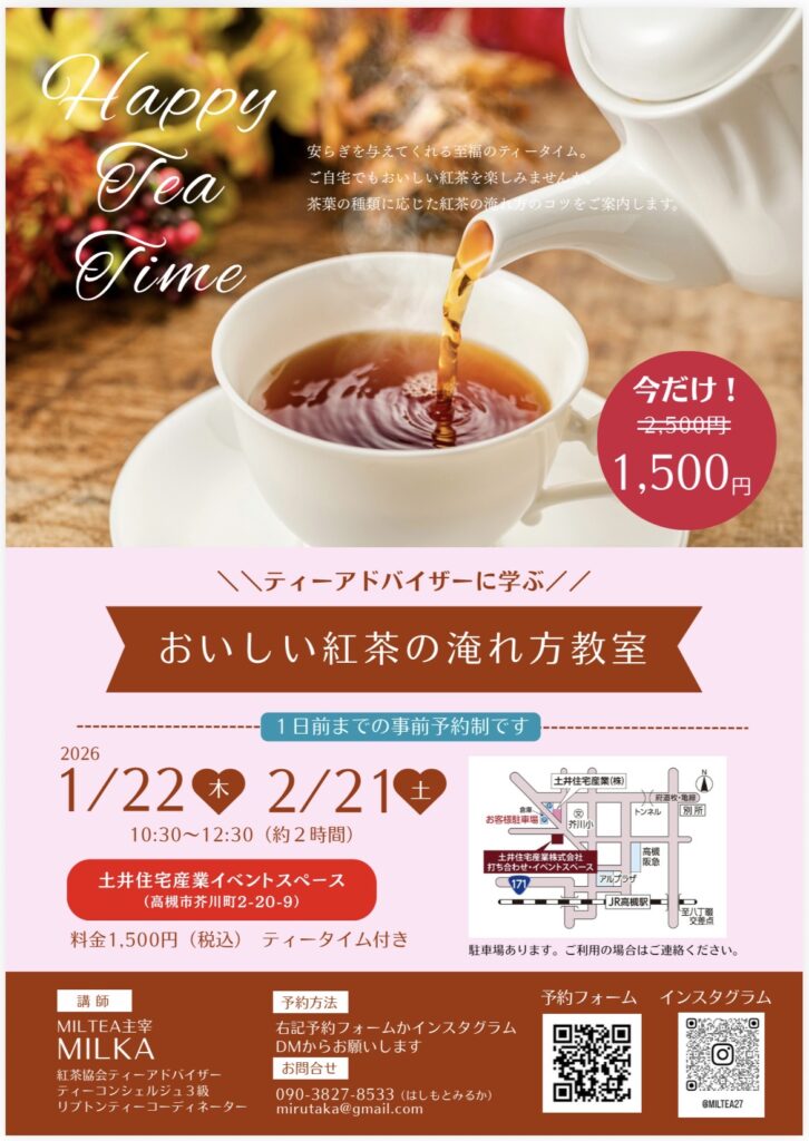 【1月22日(木)、2月21日(土)開催】おいしい紅茶の淹れ方教室🫖