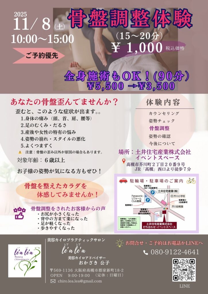 【11月8日(土)開催】骨盤調整体験会(15分)&全身施術(90分)